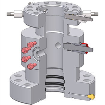 It has a test port in the lower flange to test the secondary seals and the flanged connection